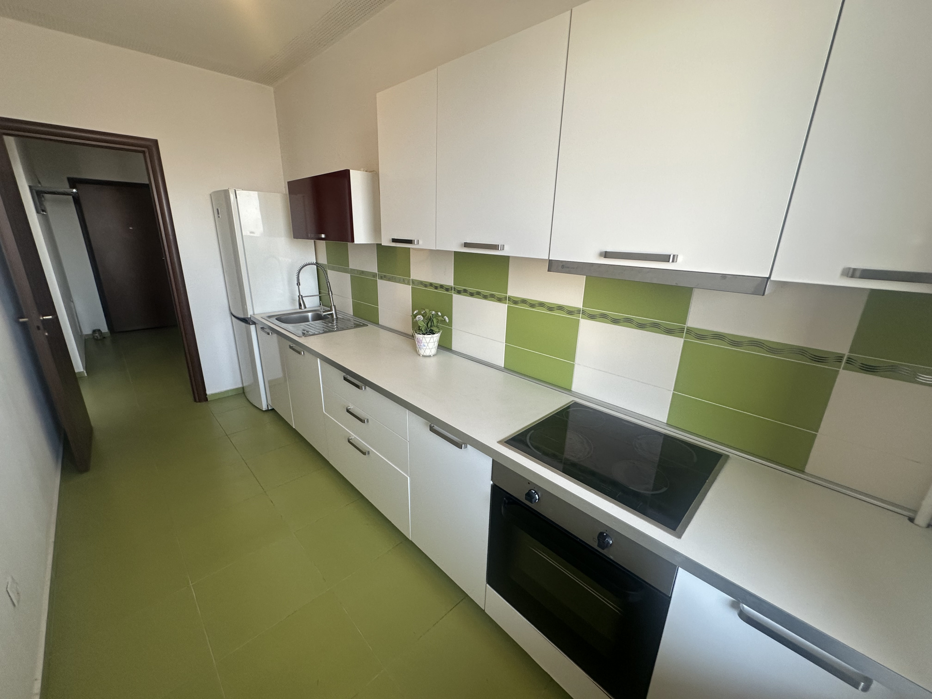 Bucataria inchisa mobilată si utilată, living, dormitor cu baie proprie cu fereastra, si un grup sanitar.