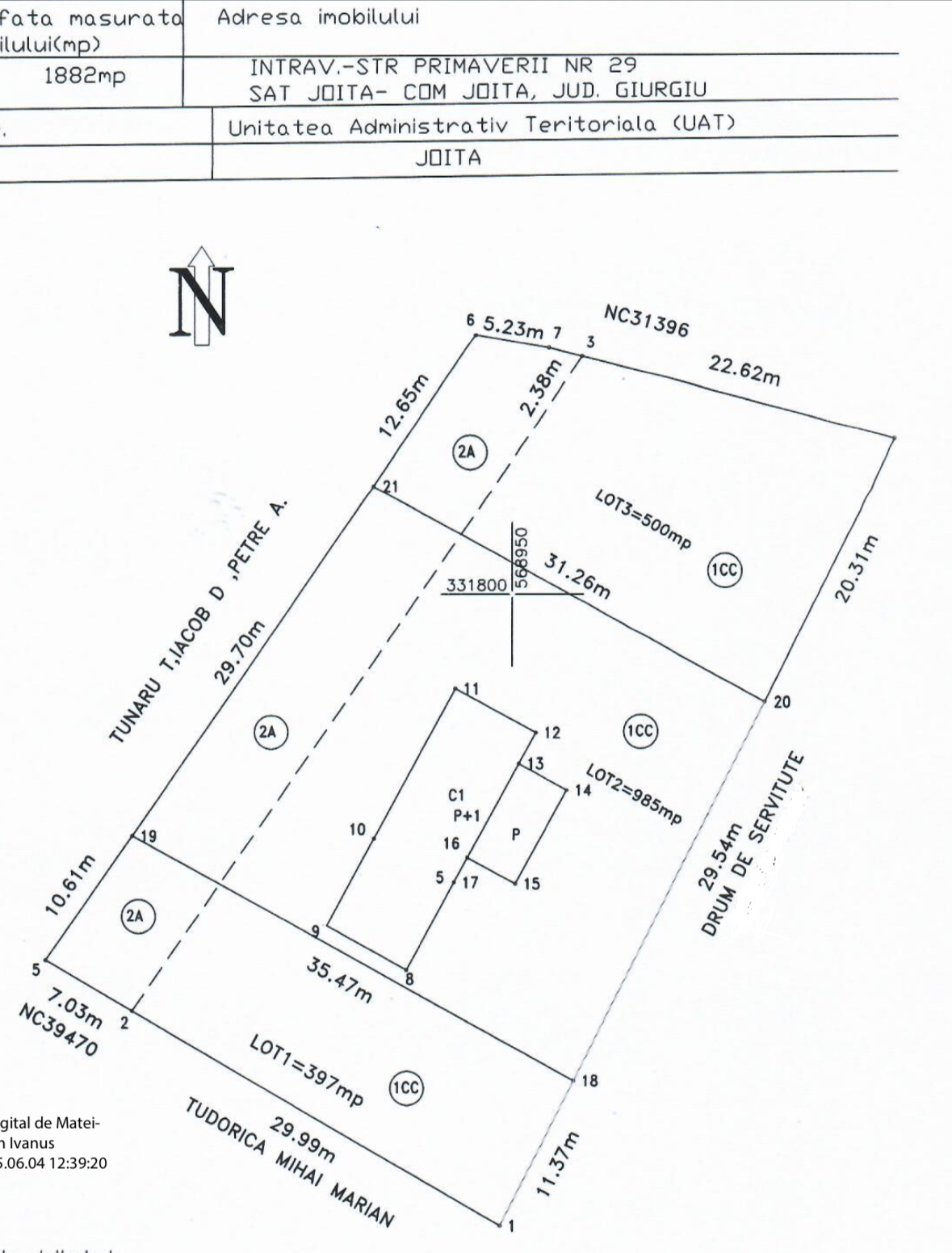 Din punct de vedere urbanistic, terenul este încadrat în intravilan, cu regim de înălțime permis P+2, oferind flexibilitate în dezvoltare și posibilitatea obținerii rapide a autorizației de construire.